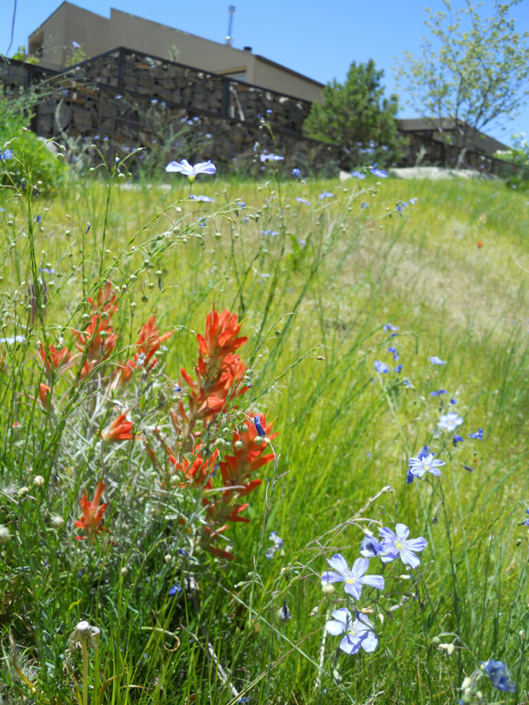 While the flax initially performed well and provided early color, it has had the least longevity of any of the wildflowers. The mullein seeds germinated well and formed soft rosettes, but the current residents of the property sadly weeded it out of the meadow for aesthetic reasons. The purple prairie clover flowers profusely every summer with irrigation once or twice a week. But, the real star of the show, from that first year until this day is — I never thought I’d say it — the underdog, Indian paintbrush.