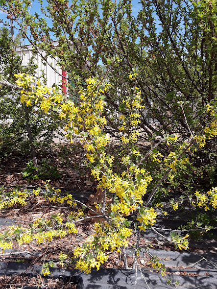 While I do like eating and growing the European black currant here in Albuquerque (mostly as a shady understory plant), I am much more excited about our native black currant — Ribes aureum— the clove currant, aka golden or buffalo currant.