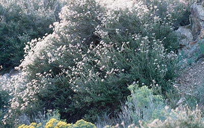 This is one of the showiest of our native shrubs. In spring it’s covered with tiny white, five-petaled flowers that look like miniature white roses. (Apache Plume is in the rose family.) But this shrub really stands out when the pink, silky-plumed seed heads cover the tips of its branches from late summer through fall. Plant it in well-drained soil in any hot, sunny location. Needs virtually no supplemental water once established.