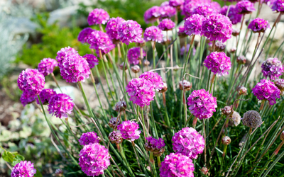 This plant is a rock garden favorite with its tidy mound of grassy foliage and profusion of rose-pink spherical flowers. Kept “deadheaded,” flowering will continue throughout much of the summer. Well drained sandy or loamy soil is best for Armeria maritima. It appreciates regular watering during the heat of summer, although drier conditions are fine for cooler times of the year. Armeria is perfect for interplanting with blue flowering Veronica and white Greek Yarrow, among others, for outstanding rock garden color combinations.