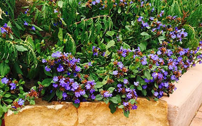 An outstanding, long-lived groundcover that slowly weaves itself into the garden, creating large drifts of fall color. The deep blue flowers, which begin as the weather begins to cool and days grow shorter, are numerous and long lasting. As the plant’s flowering finishes, its leaves begin a month-long change to a vivid mahogany-red color. Plumbago is extremely adaptable, growing equally well in sun or shade, and thriving in a wide range of soil types.