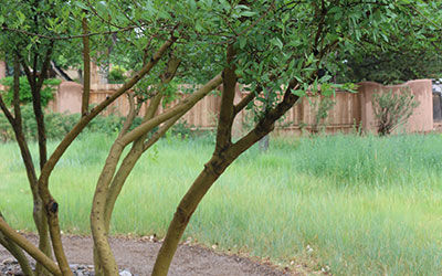 New Mexico is the land of enchantment. The blue- grass state is Kentucky. People love our sunny skies and low humidity; bluegrass does not. How much thirsty lawn is appropriate here? Kentucky bluegrass is a cool season grass that requires a minimum of 40 inches of rainfall a year to stay lush and green. Many cities in New Mexico average 8 inches or less precipi- tation annually. That’s why we have to water bluegrass so much here in the high desert.