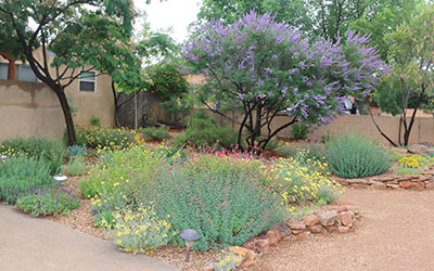 A mulch, bark, or rock area at least 8 inches wide adjacent to sidewalks and curbs will help eliminate water waste.