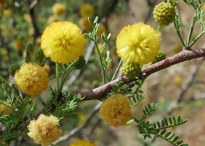 A member of the pea family, the Whitethorn Acacia is long-lived and able to survive only on rainwater in the Albuquerque area. It becomes either a large shrub or small tree. Naturally occurring on rocky slopes and drainage washes from Arizona to Texas at elevations from 1,500 to 6,000 feet, Whitethorn Acacia produces fragrant, yellow puffball flowers from April through June that develop into 2”-5” long capsules with clear constrictions between the beans (thus the Latin name). Branches range from dark grey to reddish-brown, with a distinctive zigzag shape and deciduous, fern-like foliage. Whitethorn Acacia is hardy to -10 degrees.