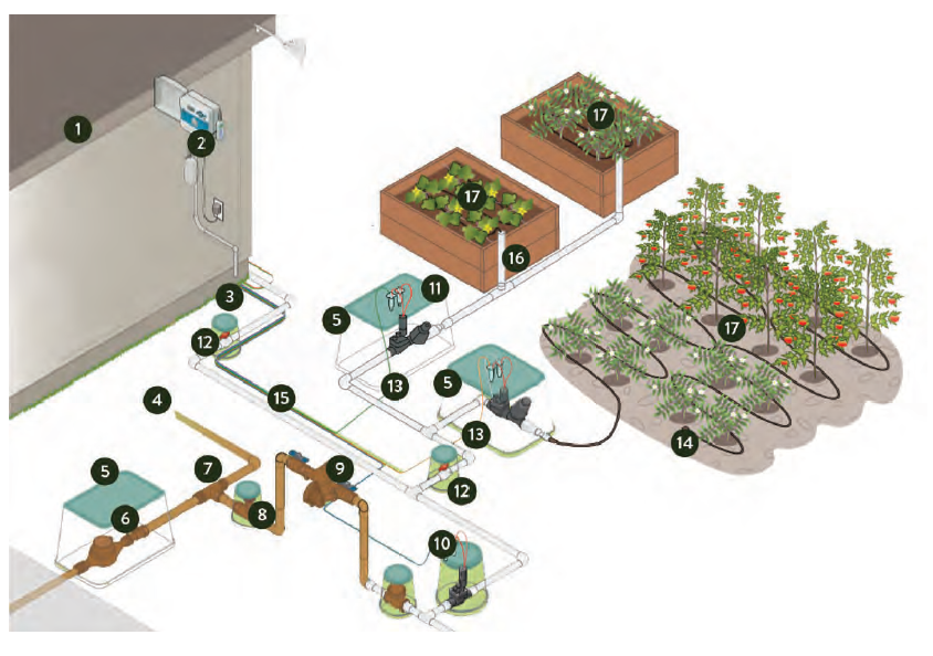 The key to growing the best quality produce, fruit-bearing trees, shrubs and vegetables is having a consistent watering schedule that is maintained until harvest. If you are unable to install a new irrigation valve for your edible garden, you can connect it to your hose spigot with a spigot irrigation timer. We recommend the smart versions of these timers. Rebates are available.