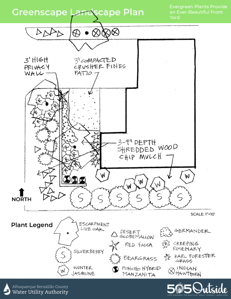 Creating a landscape plan is a complicated endeavor. Luckily for home gardeners, landscape architects specialize in designing outdoor spaces. Today, we’re sharing a unique plan by New Mexico landscape designer David Cristiani to give you some inspiration and ideas for designing your own yard. We’ll be sharing three more landscape plans in future issues of 505Outside.