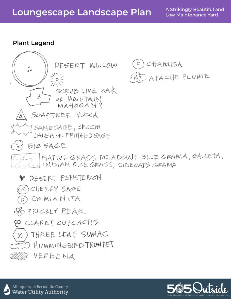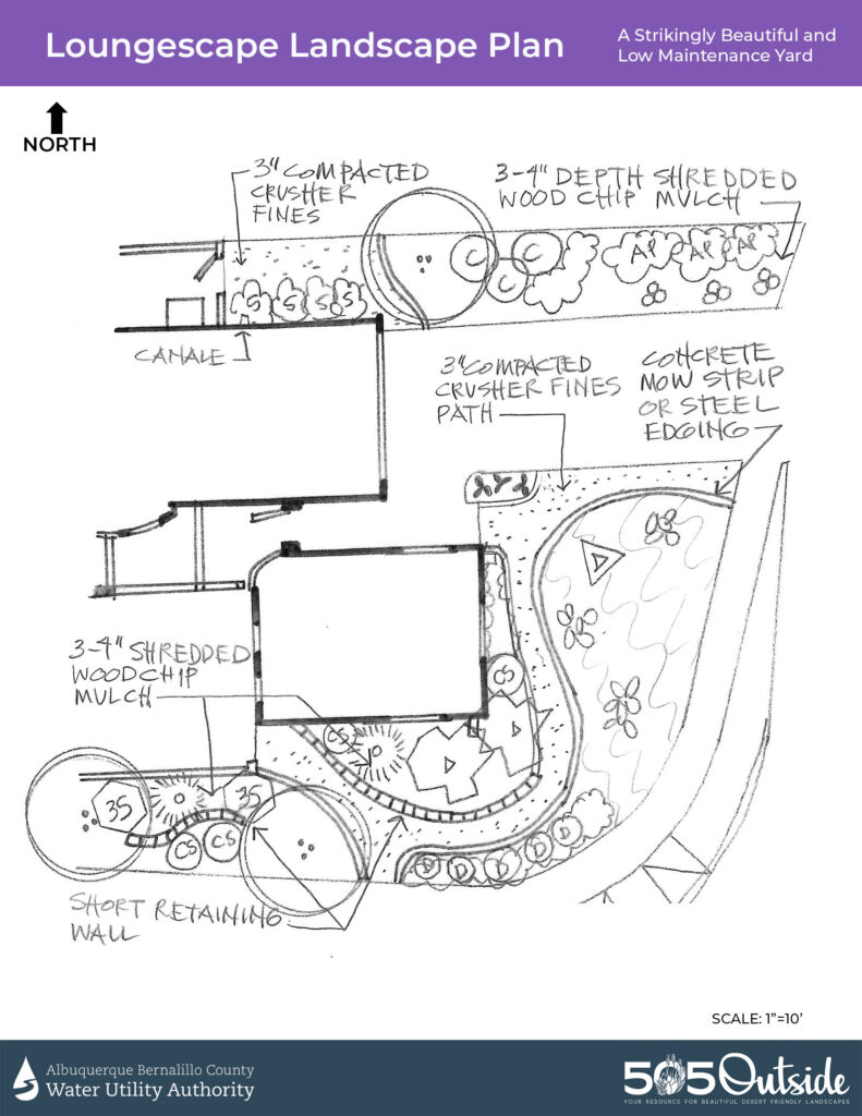 A lot goes into creating a landscape plan, and it helps to have some expert help. Local landscape architect George Radnovich, FASLA, created this design for those opting for a low maintenance yard. You can follow his design right down to each individual plant or customize it to fit your own yard. This is the fourth landscape plan we’ve featured in 505Outside, and we’ll be sharing one more plan in the next issue.