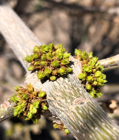 Leaves out at the end of the small branches are busy converting sunlight energy into stored chemical energy in the form of sugars. These are then used as fuel and as building blocks for the tree to power its ongoing life functions and make the complex chemicals needed to do so.