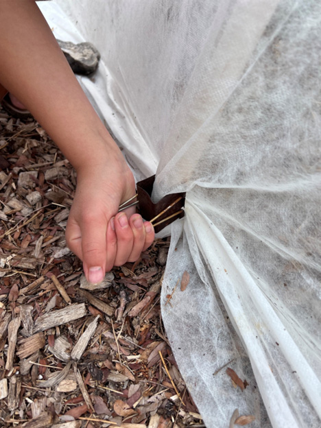 - Installing hoops is simple: Pound the 3/8” rebar about 12”-14” deep, slip the ½” PVC over the rebar, clip the fabric to the PVC with extra-large binder clips and weigh down the edges and ends with stones.