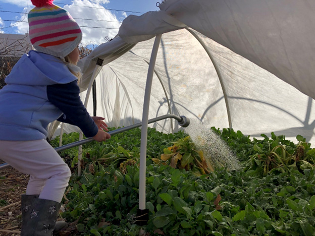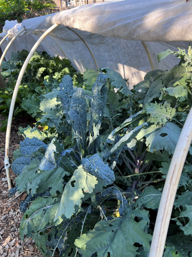 There are substantially less pests in the fall, winter, and early spring compared to the summer. Two pests that you might encounter are aphids and cabbage worms which are relatively easy to manage. Cabbage worms can be avoided by covering your plants with the row cover material to exclude the cabbage moth from laying eggs on your tender greens.