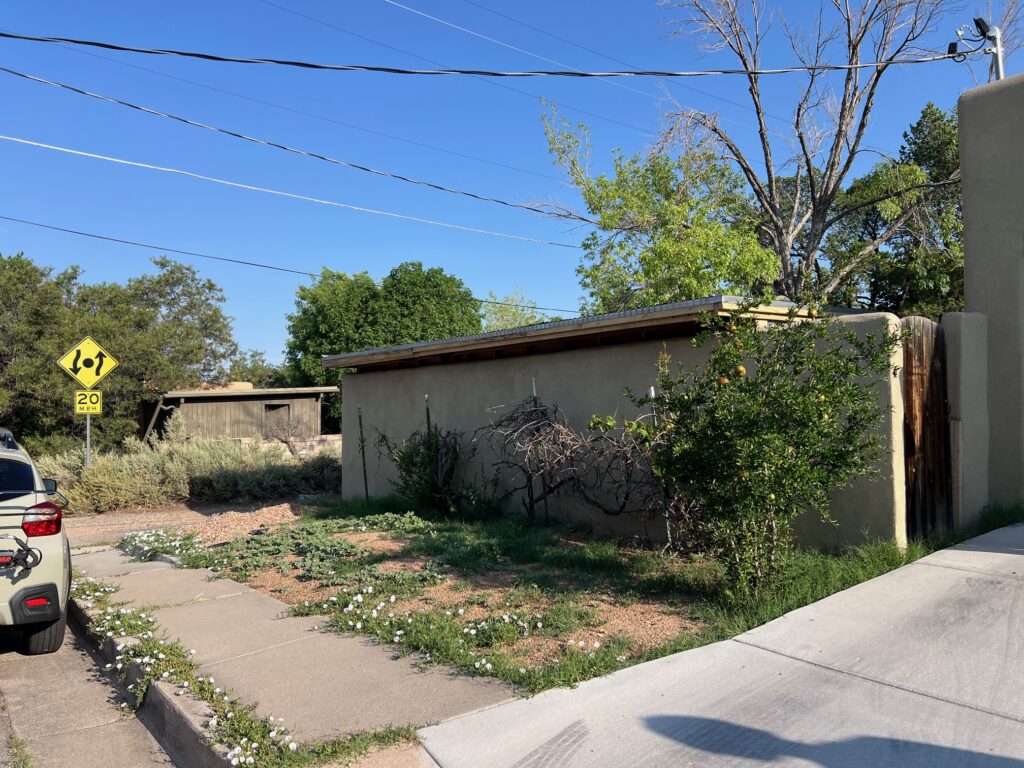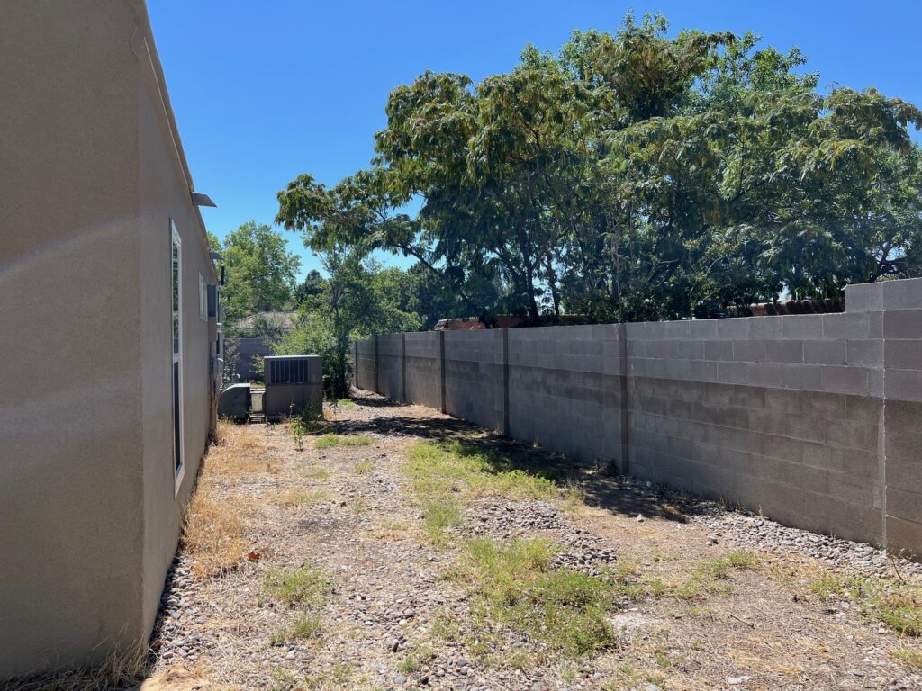 The obvious question to follow is, what’s next? We recommend wood chips spread to a depth of 4 inches. This mulch (without weed fabric) helps improve the soil over time and allows the tree and plant roots to breath. It also cools the environment a few degrees compared to rock. Several suppliers in the Albuquerque area sell mulch, and they all deliver. They’ll be happy to tell you how much you need if you know the dimensions. Additionally, several places offer free or discounted mulch. Call up large tree removal companies and see if they have any or head to the East Mountain Transfer Station in Tijeras and pick up a cubic yard for $5. There is also a great website called ChipDrop that connects tree service companies with homeowners who want mulch — you may have to wait a while for the stars to align but it’s totally free.