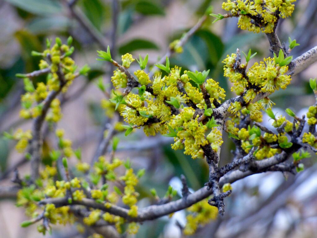 Traditionally found as an understory plant near the Rio Grande, it makes a great small tree in a courtyard, can be an effective natural hedge or windbreak or can be planted under large shade trees for wildlife and interest. This shrub features upright arching and finely twigged white branches with rounded bright celery green foliage and tiny yellow flowers in the early spring that provide nectar for bees. These plants are dioecious, meaning they are separate male and female plants, in late summer, females have small blue-black berries, which birds enjoy. Males are fruitless. Leaves change to golden yellow in the fall then drop to expose the sculpture of the pale white branches. New Mexico olive is very drought tolerant once established.