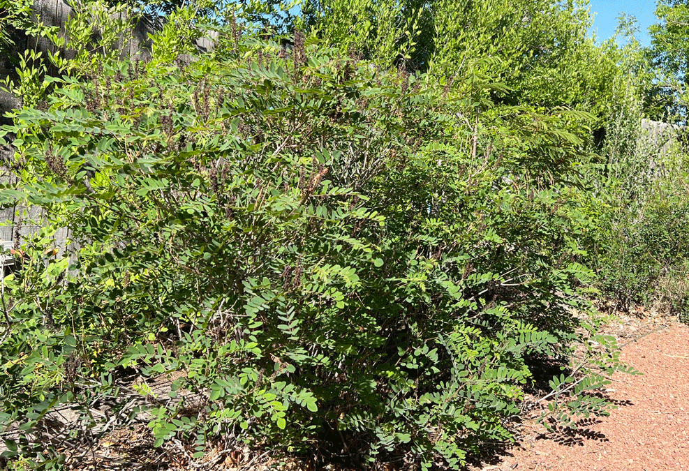 Type: Deciduous Exposure: Sun/Shade Water Use: Medium Mature Size: 10’ x 10’ This beautiful deciduous native shrub fills with unique purple spiked flowers in May and June. This plant is adored by wildlife for its small seedpods, and pollinators love the flowers. It...