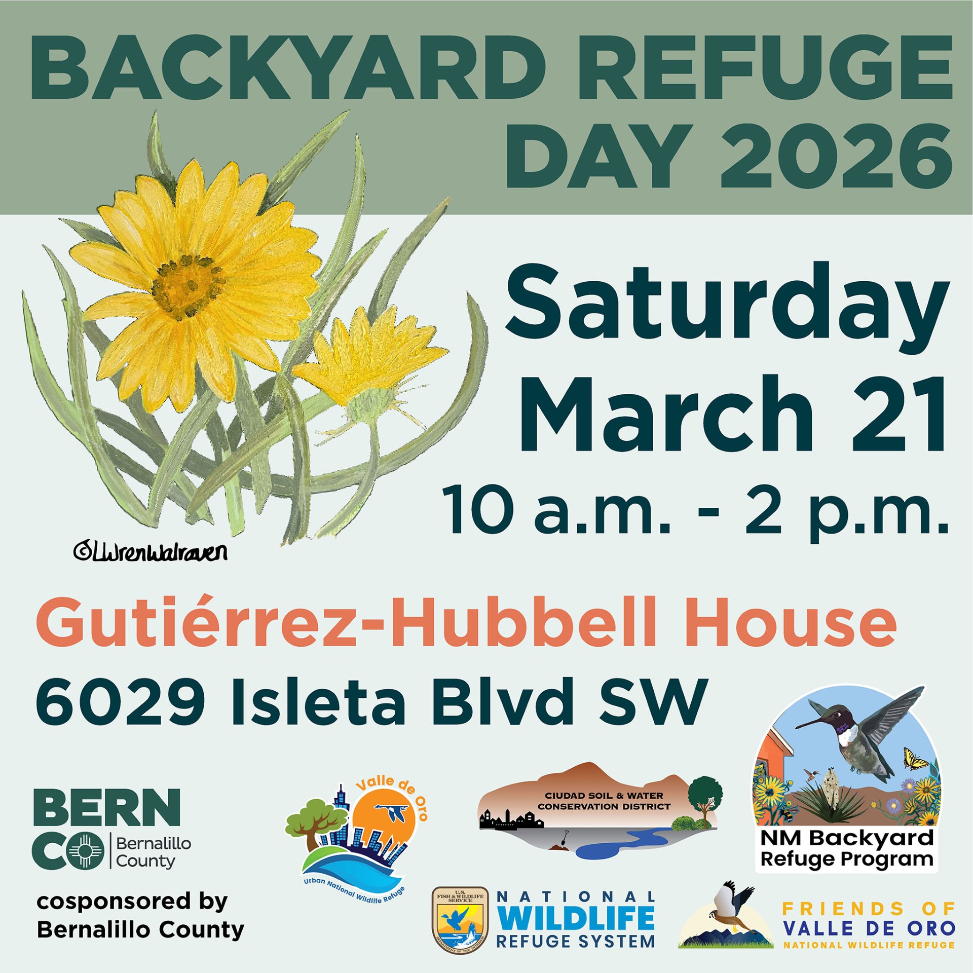March 21, 10 a.m. – 2 p.m., Gutiérrez-Hubbell Open Space (6029 Isleta Blvd SW) Backyard Refuge Day