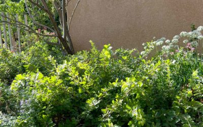 Grasses grown as lawns are the groundcover most resistant to foot traffic, but even lawns wear thin in soil compacted from frequent heavy use. Lawns are also a very high-water-use groundcover compared with the plants described in the plant list as even the Medium+ groundcovers can be drip irrigated. The aggressive nature of the plants themselves, as well as the strategy of limiting watering to points at soil level where the roots can make good use of it, and mulching deeply to further reduce evaporation has the net result of minimizing weed invasion and reducing maintenance time.
