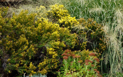 The many shrubs in the plant list marked as “Rainwater Only,” “Low”+ and Low under the water heading should be watered weekly the first summer after they are planted, every two weeks in autumn and spring, and monthly or less in winter. As you water less often, water more deeply so that the moisture penetrates three feet into the soil. After a year or two, water twice a month in summer as well as in spring and autumn, and after three or more years you may be able to water once a month year-round.