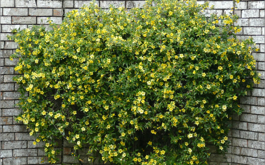 Type: Vines Exposure: Sun/Shade Water Use: Medium Mature Size: Climbing x 10’ wide This vine, also known as Carolina jasmine and the state flower of South Carolina, has shiny green leaves growing on reddish brown climbing stems. In early spring, it puts out fragrant...